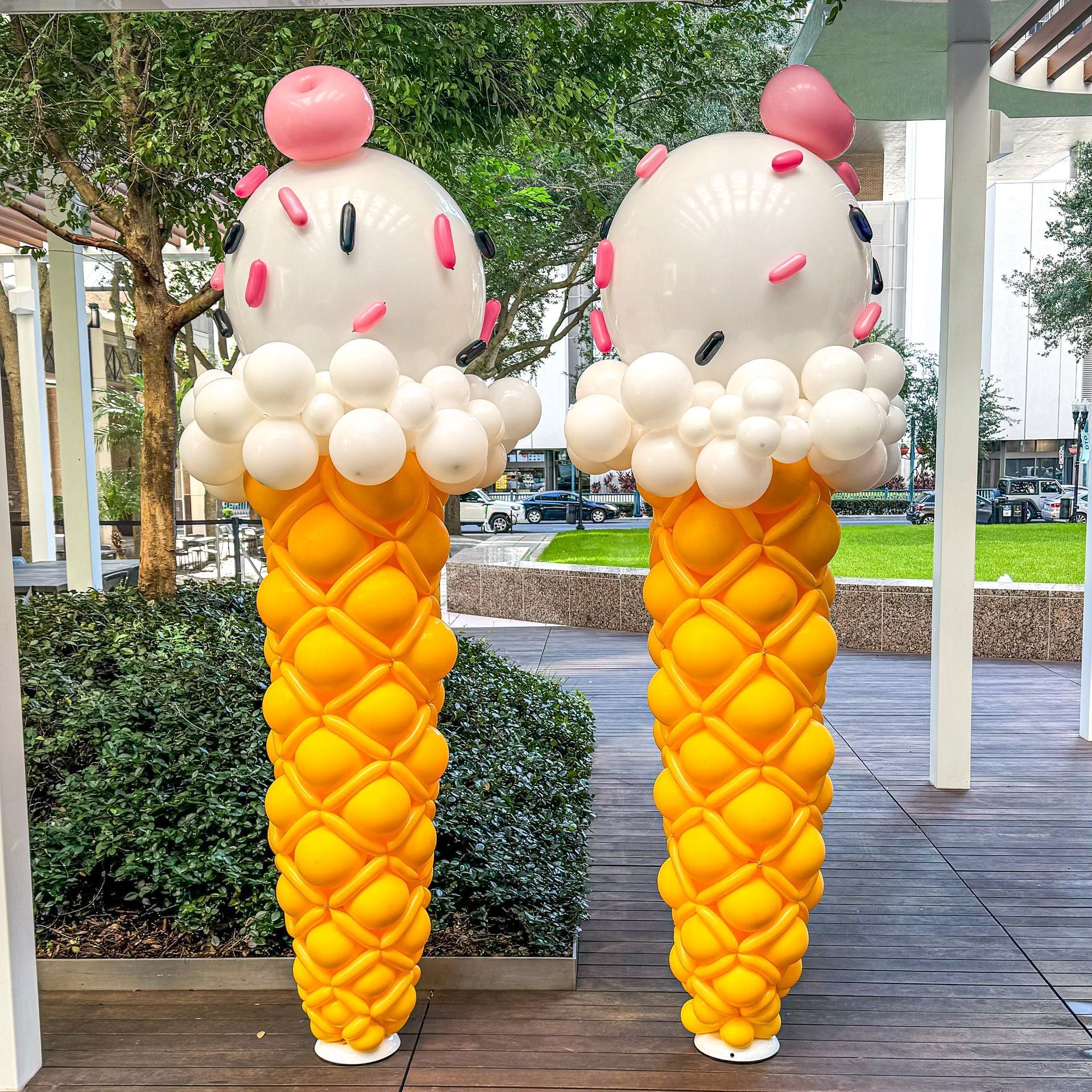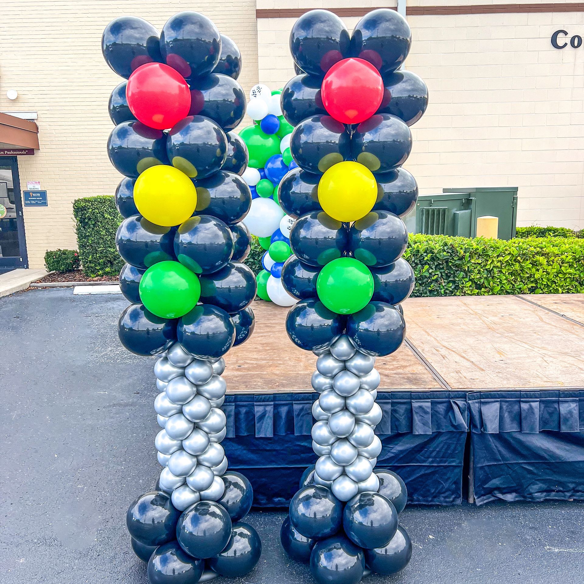 Our balloon column installations are professionally designed, delivered, and installed throughout Orlando and Central Florida. Balloon columns are free-standing balloon displays commonly used for store grand openings, ribbon cuttings, corporate promotions, school events, and venue entrances. Each design is customized to your brand colors, event theme, and venue layout.